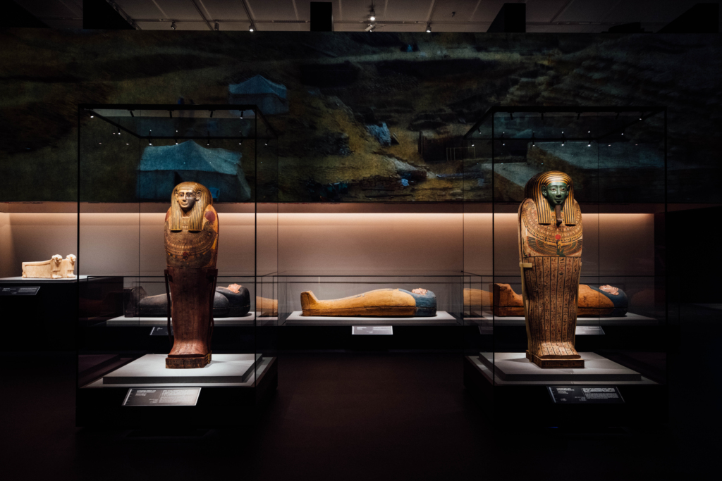 ไฮไลต์ของนิทรรศการอยู่ที่การจัดแสดงโบราณวัตถุหายาก เช่น รูปสลัก เครื่องทองคำ โลงศพมัมมี่ขนาดใหญ่ และมัมมี่ในรูปแบบต่างๆ