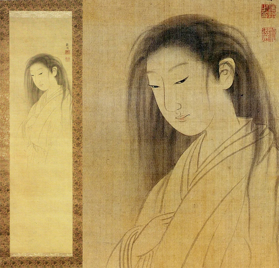 คืนหนึ่งวิญญาณของเธอได้มาปรากฏตัวให้เขาเห็นในความฝัน โอเคียวไม่อาจลืมภาพนั้นได้ จึงได้วาดภาพนี้ขึ้น ทำให้ภาพนี้เต็มไปด้วยความรัก ความโศกเศร้า และความโหยหา ผ่านสายตาของวิญญาณหญิงสาว
