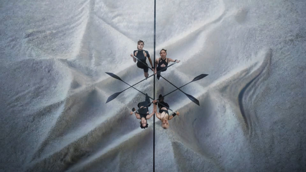 ซีนที่เด่นที่สุดของเพลงนี้คงจะเป็น ‘เรือกรรเชียง 4 คน’ ที่ปรากฎตั้งแต่ใน MV Teaser ท่ามกลางภาพวิชวลสุดล้ำ ฉากนี้แฝงเมสเสจที่ทรงพลังไว้เพียบ