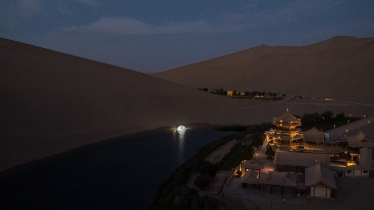 Half-Moon Installation ที่ส่องสว่างท่ามกลางทะเลสาบพระจันทร์เสี้ยว