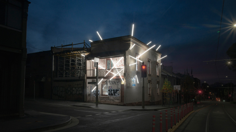 ลำแสงที่ทะลุตึกในซิดนีย์ สร้างเส้น Perspective เปลี่ยนอาคารร้างให้กลับมามีชีวิต