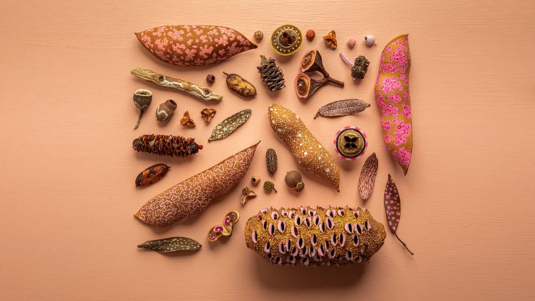 งานศิลปะบนฝักเมล็ด โดย Chelsea Baker
