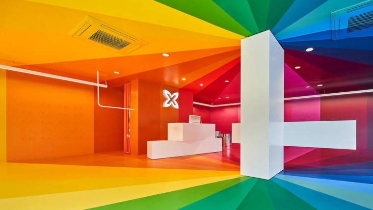การระเบิดของสีสันกลางร้านค้า ผลงานร้านสีรุ้งในบาร์เซโลนาโดย Studio Animal