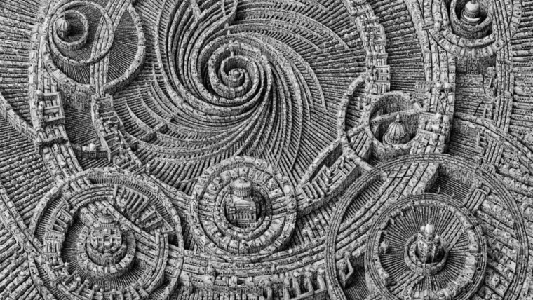 ภาพวาดสถาปัตยกรรมเมืองเขาวงกตเรขาคณิต ที่ไททันยังต้องยอม!