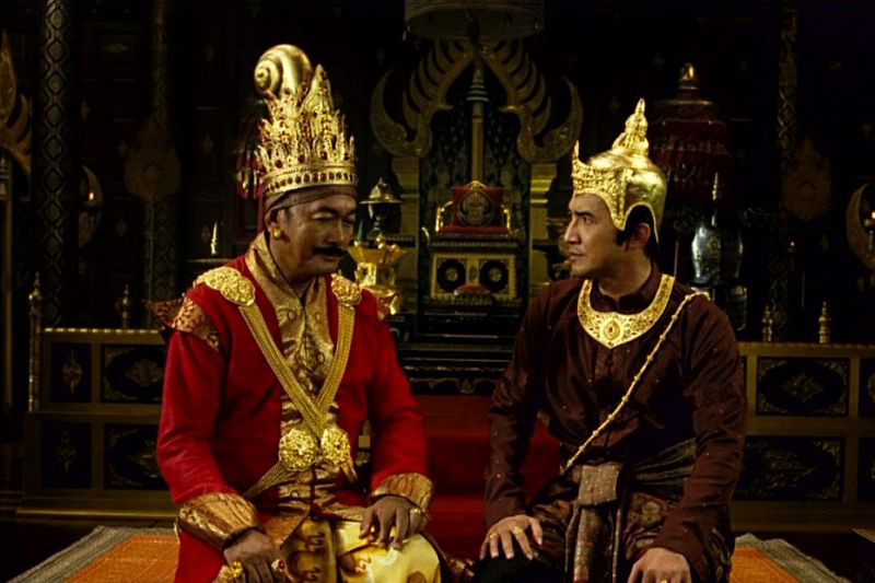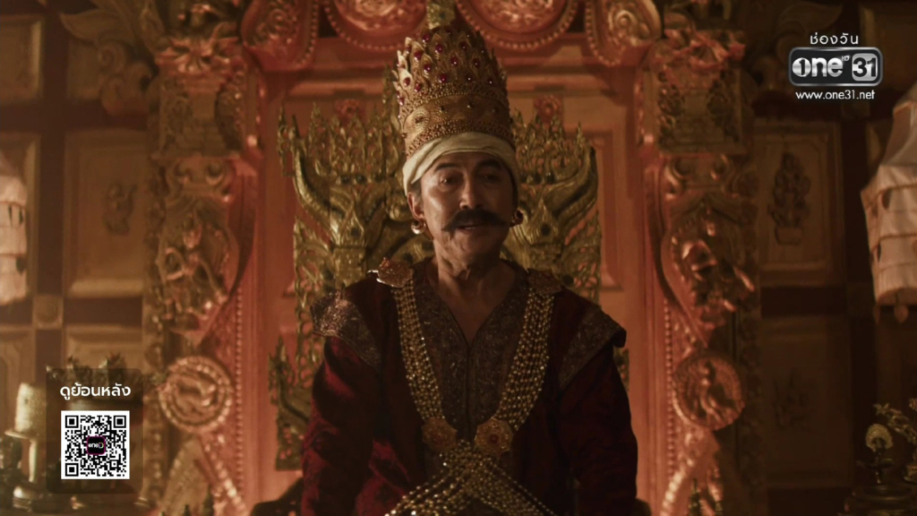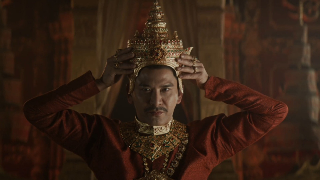 เครื่องแต่งกายที่อลังการที่สุด แน่นอนว่าต้องเป็นเครื่องแต่งกายของกษัตริย์ อย่าง ‘พระเจ้าบุเรงนอง’ และ ‘พระเจ้านันทบุเรง’ ในฉากพระราชพิธีบรมราชาภิเษก เครื่องแต่งกายของกษัตริย์พม่าโดยมาก ยังคงได้แรงบันดาลใจมาจากภาพยนตร์อย่าง ‘ตำนานสมเด็จพระนเรศวรมหาราช’ (พ.ศ. 2550–2558) ศิราภรณ์ทรงสูง ประดับด้วย ‘ซินทอง’ หรือกาบทองคำโดยรอบ ทรง ‘เสื้อกาบคำ’ เสื้อแขนยาวผ่าหน้า มีเชิงงอนอย่างจิตรกรรม เพื่อให้ชายเสื้อและปลายแขนคงรูปงอนงามอยู่ได้ ช่างสมัยก่อนจะใช้โครงลวดหรือการอัดผ้าแข็งพิเศษประกอบไว้ภายใน
