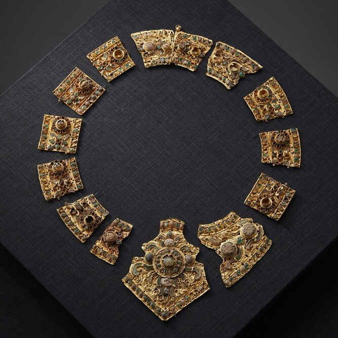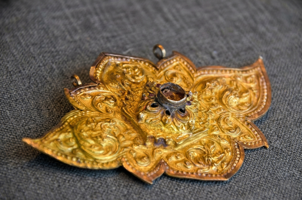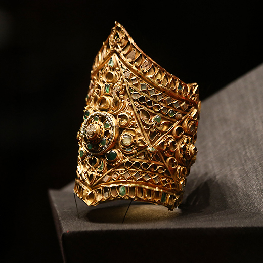 งานออกแบบเครื่องประดับที่มากมายเหล่านี้ ล้วนมีหลักฐานมาจากงานจิตรกรรมสมัยอยุธยา อย่างจิตรกรรมฝาผนัง หรือสมุดภาพไตรภูมิ โดยเฉพาะอย่างยิ่ง เครื่องทองที่ค้นพบใน ‘กรุวัดราชบูรณะ’ วัดสำคัญใจกลางพระนครศรีอยุธยา ซึ่งสร้างตั้งแต่สมัยอยุธยาตอนต้น เครื่องทองเหล่านี้ล้วนมีอายุกว่า 500 ปี อย่าง ‘กรองศอ’ ซึ่งมีการเลียนแบบลวดลายและเทคนิคการฝังอัญมณีมีค่าลงไปในเครื่องประดับ ซึ่งราชสำนักอยุธยาพัฒนาขึ้นมาจากเทคนิคของราชสำนักจีนและเปอร์เซีย และ ‘ทับทรวง’ ซึ่งใช้เทคนิคทองคำดุนลายก้านขดหน้าสิงห์ งานเครื่องประดับเหล่านี้ ออกแบบได้สวยงามสมจริง ราวกับหลุดออกมาจากกรุสมบัติอยุธยา