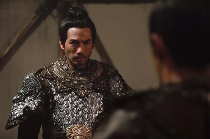 สำหรับฝ่ายชายยังมี ‘ชุดเกราะ’ สำหรับฉากสงคราม เราได้เห็น ‘เกราะแบบจีน’ ของพระมหาธรรมราชา ซึ่งได้รับแรงบันดาลใจมาจากชุดเกราะสมัยราชวงศ์หมิงอีกครั้ง หลังจากที่ได้เห็นพระไชยราชาธิราช ทรงใน ‘แม่หยัว’ (พ.ศ. 2567) รวมถึง ‘เกราะแบบฝรั่ง’ ของพระนเรศวร ทั้งแบบเกราะหนัง และชุดเกราะโลหะ ซึ่งตีความมาจากเกราะแบบตะวันตก อย่าง ‘โปรตุเกส’ ซึ่งเป็นชาวตะวันตกชาติแรกที่เข้ามาติดต่อกับอยุธยากว่าร้อยปีก่อนสมัยของพระนเรศวร งานชุดเกราะถือเป็นงานออกแบบสร้างสรรค์ที่ท้าทาย เนื่องจากไม่พบหลักฐานร่วมสมัย ผู้ออกแบบจึงต้องอาศัยบริบททางประวัติศาสตร์แวดล้อมในการตีความ