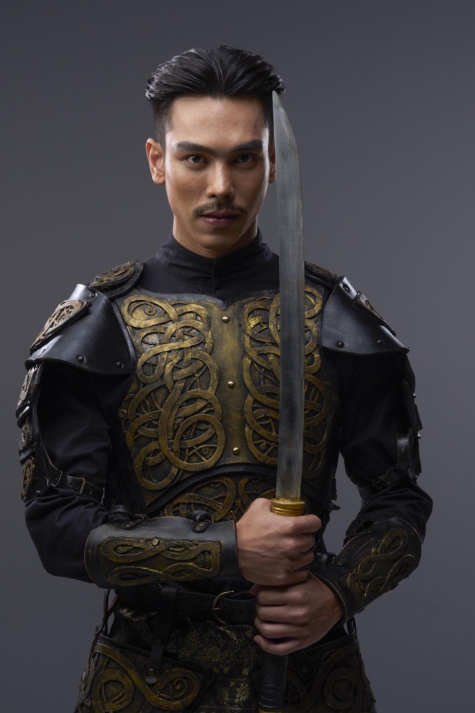 อย่างตัวละคร ‘มังแยจอชวา’ พระโอรสองค์รองของพระเจ้านันทบุเรง ถูกออกแบบให้มีความแซ่บ ผ่านลักษณะบุคลิกและนิสัย รวมถึงเสื้อผ้าเครื่องแต่งกาย ซึ่งมักจะมีสีสันสดใสฉูดฉาดกว่าตัวละครอื่น สังเกตจากสีของ ‘กองบอง’ ผ้าโพกหรือผ้านุ่ง รวมถึงฉลองพระองค์ในฉาก ‘พระราชพิธีเจาพระกรรณ’ หรือเจาะหู ซึ่งแทนการเปลี่ยนผ่านสู่วัยผู้ใหญ่ของชาวพม่า ‘เสื้อกาบคำ’ สีขาวปัก ดิ้นเงิน โดดเด่นออกมาจากฉากท้องพระโรงสีทอง ปล่อยพระเกศายาว ทรงชุดสังวาล แผงคอ นุ่งผ้าไหมอินเดีย และทรงฉลองพระบาทเชิงงอน อลังการสมฐานะพระราชวงศ์ ในขณะเดียวกันให้ความรู้สึกแปลกใหม่ร่วมสมัย ถือเป็นการตีความผ่านการออกแบบที่เฉียบคมมาก