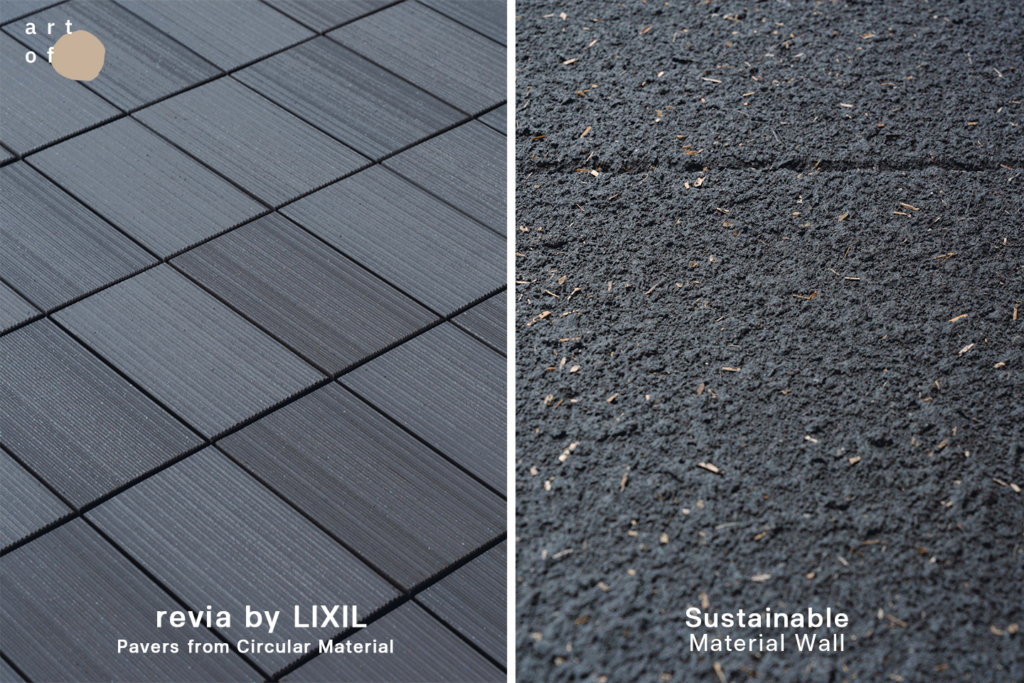 ที่มาของวัสดุส่วนใหญ่ถูกคัดมาจากแหล่งต่างๆ ในประเทศญี่ปุ่น แม้กระทั่งแผ่นปูพื้นเล็กๆ ที่ดูเหมือนกระเบื้องหินธรรมชาติ แท้จริงแล้วทำมาจากเศษพลาสติกและไม้มาทำวัสดุก่อสร้าง