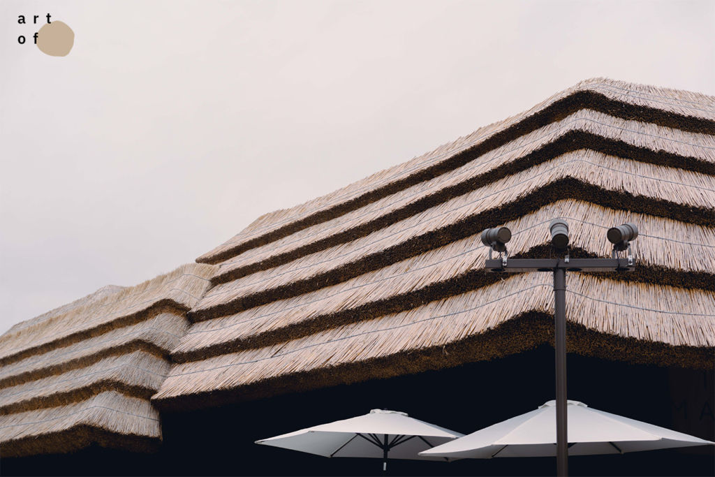 การมุงฟาง จาก หญ้า เป็นหนึ่งในภูมิปัญญาการก่อสร้างในหลายวัฒนธรรมของโลก เช่นเดียวกับประเทศญี่ปุ่นก็มีเทคนิคการมุงจากเช่นกัน ผสานกับเทคโนโลยียุคปัจจุบัน หญ้าแต่ละกอถูกคัดมาจากแหล่งหญ้าชั้นดีของญี่ปุ่น ได้แก่ อาโซะ จังหวัดคุมาโมโตะ, โกเทนบะ จังหวัดชิซึโอกะ, โยโดกาวะ โอซาก้า, มุรายะมะ จังหวัดชิกะ, และ ฮิรุเซน จังหวัดโอคายามะ