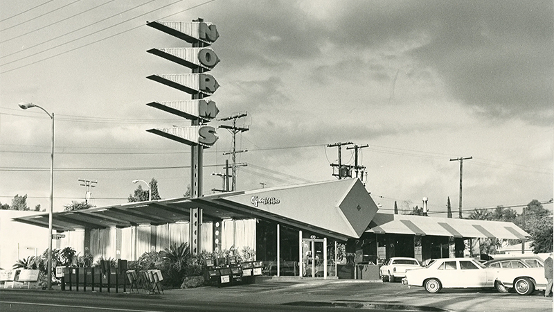 และ Norms Restaurant (1957) ร้านอาหารเปิด 24 ชั่วโมงในลอสแอนเจลิส โดยมีป้ายตัวอักษรใหญ่แบบโมเดิร์นที่เด่นมากๆ
