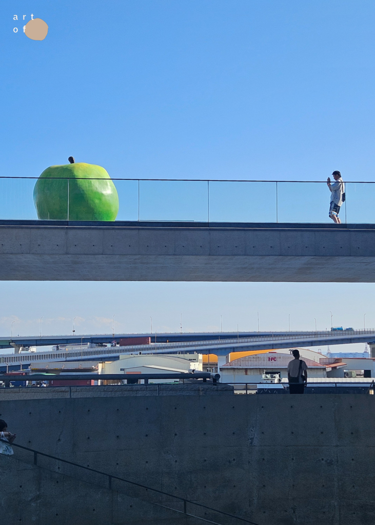 ปัจจุบันมีการจัดแสดงผลงานประติมากรรมกระจายอยู่ตามส่วนต่างๆ ของพิพิธภัณฑ์ รวมไปถึง ‘แอปเปิ้ลเขียว’ ที่อยู่ที่ดาดฟ้าตัดกับวิวทะเลสีฟ้าจัด ทำให้ที่นี่เป็นจุดถ่ายรูปยอดฮิตของผู้ที่มาเยือน เหมือนฟักทองบนเกาะนาโอชิมะที่ต้องต่อคิวถ่ายรูป