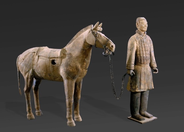ตัวอย่างสำคัญที่เป็นที่รู้จัก ได้แก่ ‘ประติมากรรมม้าดินเผา’ ซึ่งพบใน ‘สุสานจักรพรรดิจิ๋นซี’ เมืองซีอาน มณฑลส่านซี สาธารณรัฐประชาชนจีน ถูกสร้างขึ้นโดย ‘จิ๋นซีฮ่องเต้’ ปฐมจักรพรรดิแห่งราชวงศ์ฉิน เมื่อกว่า 2,200 ปีก่อน ในฐานะจักรพรรดิพระองค์แรกผู้สามารถรวบรวมแผ่นดินจีนเป็นอันหนึ่งอันเดียวกันได้ หลังจากการค้นพบโดยบังเอิญในปี ค.ศ. 1974