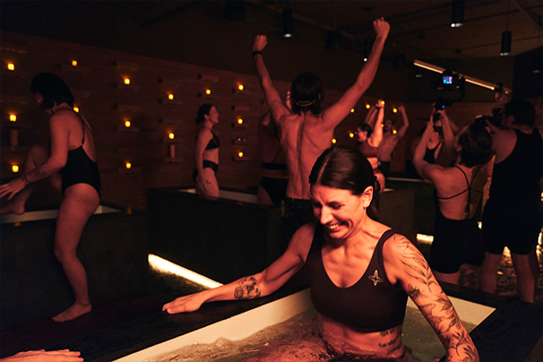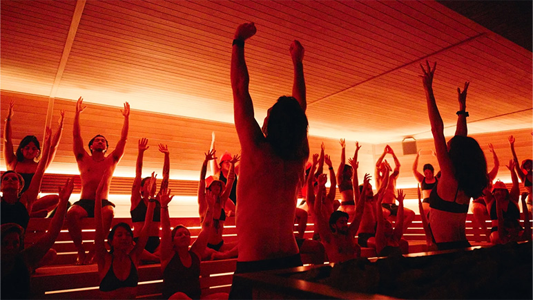 โดยแต่ละคลาสจะมีดีเจมานำการซาวน่าและแช่น้ำเย็น เพื่อกระตุ้นผู้เข้าร่วมในแต่ละช่วงของการบำบัด เหล่านี้ถือเป็นกิจกรรมกลุ่มเพื่อสร้างการมีส่วนร่วม และเชื่อมต่อทางสังคมให้กับผู้คน