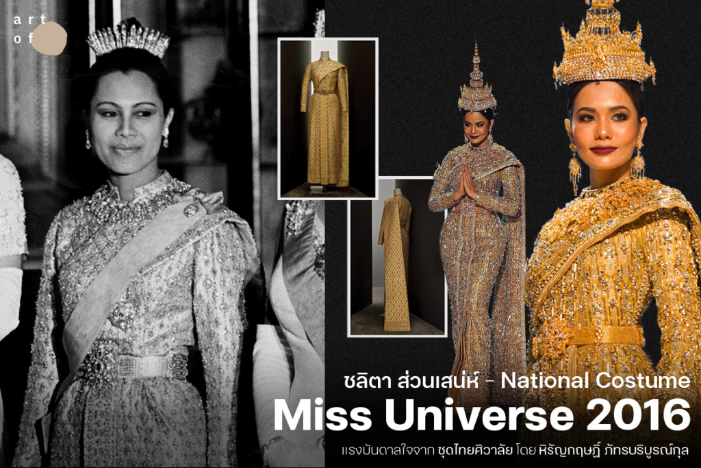 หากนึกถึงชุดประจำชาติของไทยในการประกวดมิสยูนิเวิร์ส หนึ่งในชุดที่โดดเด่นและเป็นที่จดจำที่สุด นั่นคือ ‘อัญมณีแห่งสยาม (The Jewel Of Thailand)’ ที่ตัวแทนสาวไทย ‘น้ำตาล ชลิตา ส่วนเสน่ห์’ สวมใส่ในการประกวดมิสยูนิเวิร์ส 2016 ซึ่งจัดขึ้นที่กรุงมะนิลา ประเทศฟิลิปปินส์