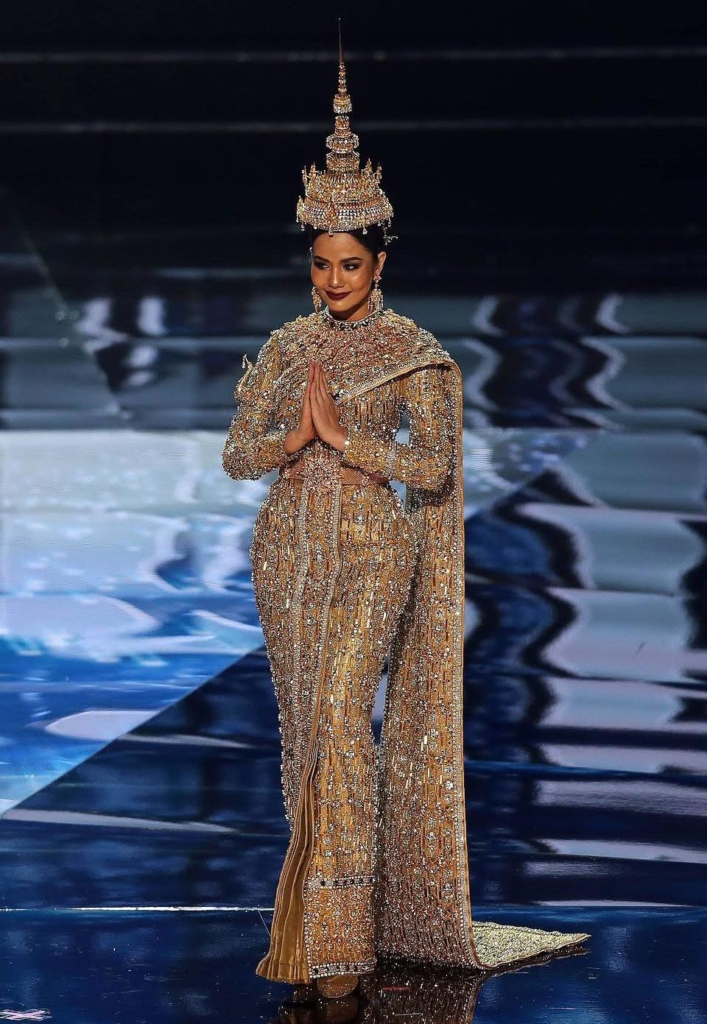 โดยเฉพาะการประกวด ‘Miss Universe’ ซึ่งเป็นเวทีที่จะได้สื่อสารวัฒนธรรมและแสดงออกถึงอัตลักษณ์อันโดดเด่นของชาติ ทำหน้าที่เป็นสะพานเชื่อมโยงมรดกของไทยให้ปรากฏต่อสายตาผู้ชมทั่วโลก จึงขอพาเจาะลึก 3 ชุดที่สร้างปรากฏการณ์บนเวทีมิสยูนิเวิร์ส ซึ่งถอดรหัสความงดงามจากฉลองพระองค์ของสมเด็จฯ พระพันปีหลวง มาได้อย่างงดงามลงตัว