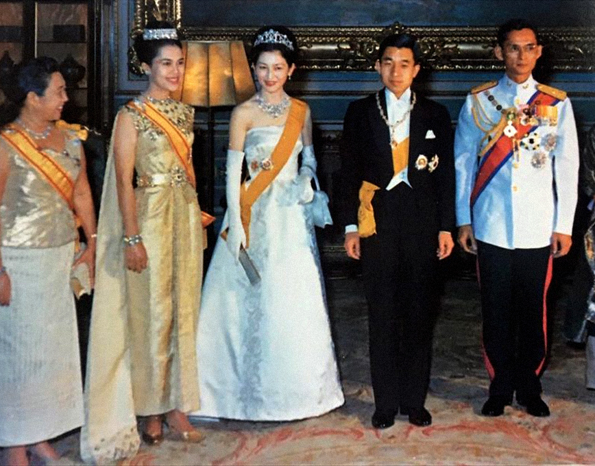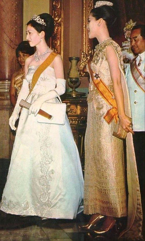 สไบสองชายนี้มีรากฐานมาจาก ‘ชุดไทยจักรพรรดิ’ ซึ่งเป็นหนึ่งในชุดไทยพระราชนิยม 8 แบบ ที่มีความสง่างามสูงสุดและสงวนไว้สำหรับงานพิธีระดับชาติ โดยทรงในการเสด็จฯ ไปในงานเลี้ยงพระกระยาหารค่ำที่พระราชวังโฮฟบวร์ก (Hofburg Palace) ในคราวเสด็จฯ เยือนประเทศออสเตรีย อย่างเป็นทางการ ในปี พ.ศ. 2507