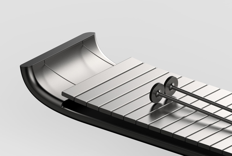 หากมีเปียโนในฝั่งตะวันตก ฝั่งไทยก็คงจะเป็นระนาดนี่เอง ผลงานนี้ผู้ออกแบบได้จินตนาการออกมาเป็นระนาดไฟฟ้าสีดำสุดเท่ เป็นผลงานชิ้นแรกในโปรเจ็คที่เกิดจากการศึกษาและถอดแบบมาจากระนาดแบบดั้งเดิม แล้วนำมาลดทอนรูปทรงให้ดูทันสมัยมากขึ้น