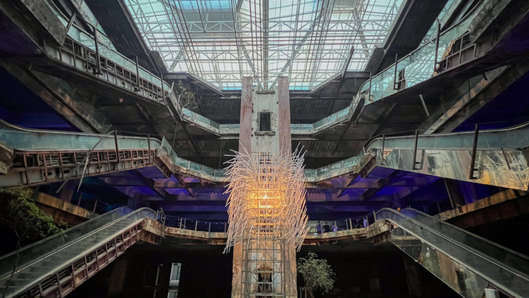 การออกแบบโครงสร้างที่โอบล้อมดวงจันทร์ยักษ์เอาไว้ถือเป็นไฮไลต์สำคัญ เพราะเกิดจากการรวบรวม ‘ขวดแสงโสม’ จากปาร์ตี้ทั่วประเทศกว่า 15,000 ใบ นำมาร้อยเรียงดีไซน์เป็นแต่ละ ‘พิกเซล’ อย่างพิถีพิถัน จนส่องแสงสวยงามครบทุกด้าน-ทุกมิติ
