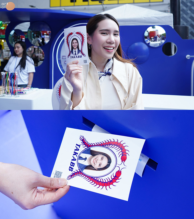 โซนที่จะพาทุกคนมาจำลองตัวเองเป็นอากงในชุดสูทสีน้ำเงิน ผ่านการถ่ายภาพ AI-generated ต่อให้ใส่ชุดของตัวเองมาก็สามารถจำลองให้อยู่ในสูทสีน้ำเงินแบบอากงได้ จากนั้นก็จะได้ภาพปริ้นท์ออกมา ซึ่งภาพนี้จะถูกนำไปปริ้นท์คัสตอมไว้บนยาดมตะขาบได้อีกด้วย กลายเป็นยาดมหนึ่งเดียวที่ไม่เหมือนใคร !