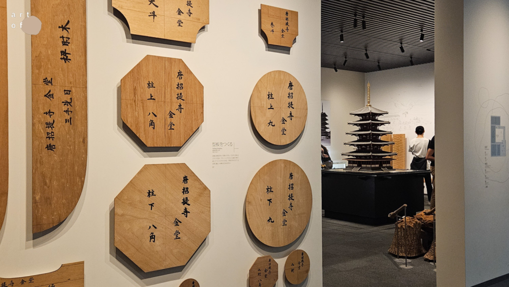 สิ่งหนึ่งที่ทำให้เราทึ่งมากคือ ‘หนังสือแบบ’ ที่ถูกเผยแพร่ตั้งแต่ช่วงต้นศตวรรษที่ 17 ถูกจำลองมาจัดแสดงในนิทรรศการ เมื่อเปิดดูเลยพบว่าในช่างไม้ญี่ปุ่นก็เขียนแบบการประกอบไม้ได้ล้ำหน้ามากๆ เรียกได้ว่ามีความคล้ายกับระบบเขียนแบบในปัจจุบันมากทีเดียว มีทั้ง แปลน รูปด้าน รูปตัด ระบุขนาดกำกับหรือใช้เป็นสัดส่วน