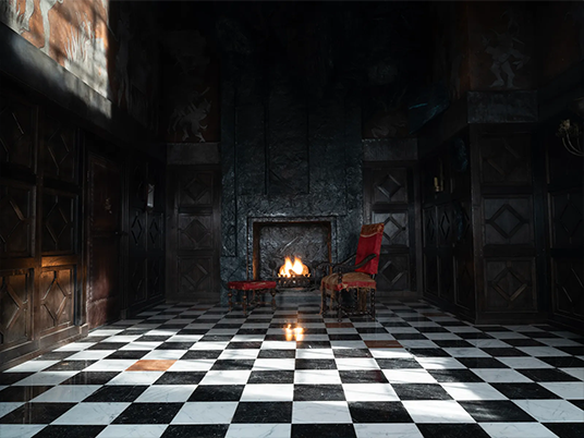 ห้องสมุดที่เป็นฉากสำคัญของเรื่อง พื้นฉาบไปด้วยสีแดงเงาวับราวเลือด และยังมีปูนปั้นรูปมือในท่าทางต่างๆ ที่ติดและเลื้อยอยู่บนหนังทุกด้าน