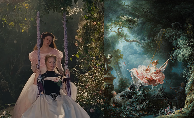 ฉากในสวนนั้นได้รับแรงบันดาลใจมาจากภาพ The Swing (1767) ภาพวาดสไตล์ Rococo โดย Jean-Honoré Fragonard ที่เป็นที่เรื่องลือเรื่องความฉาวโฉ่ในความหมายเบื้องลึกของภาพ